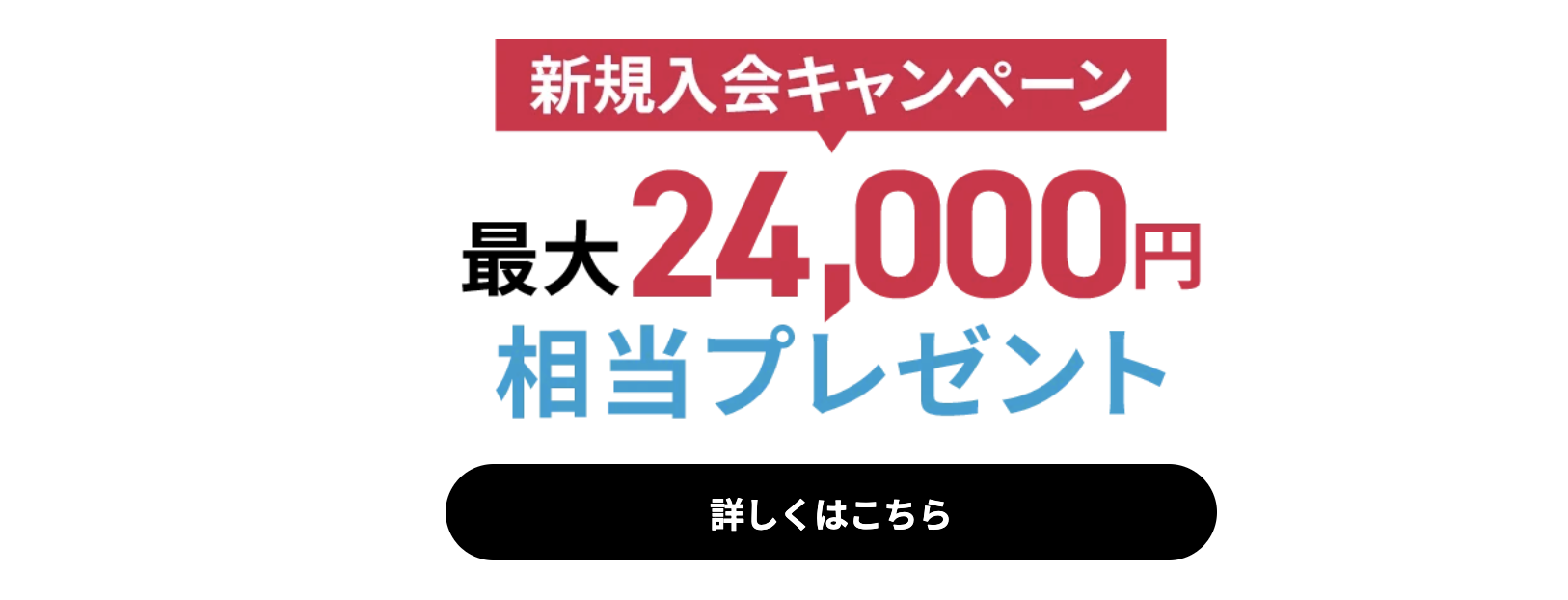 - 新規入会&利用で最大24,000円相当プレゼント!※2