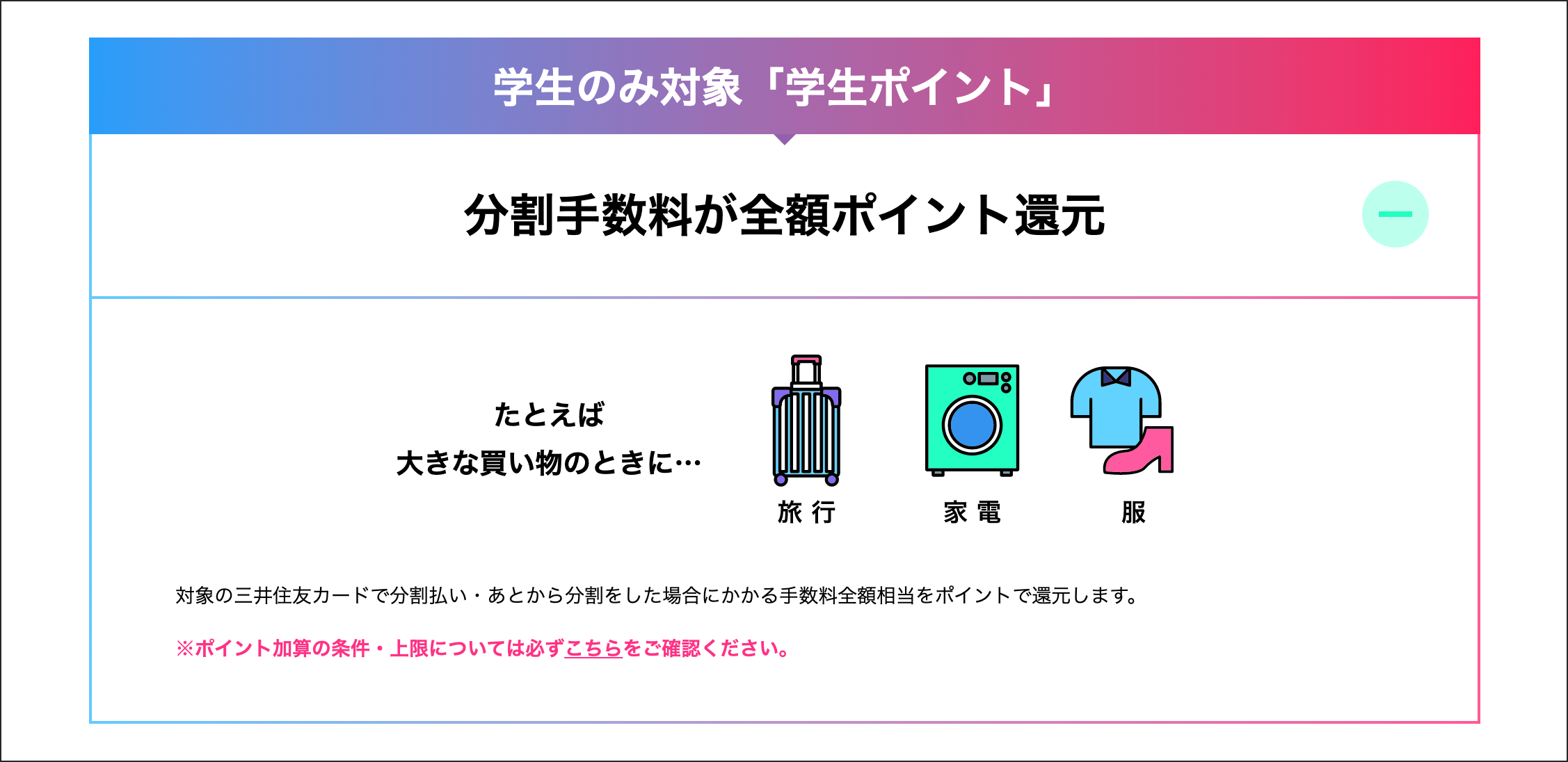 | カード名 | 三井住友カード(NL)学生用 | ||